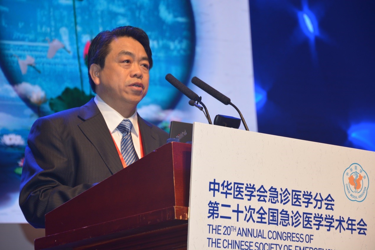 大会主席、中华医学会急诊医学分会主任委员陈玉国教授致辞