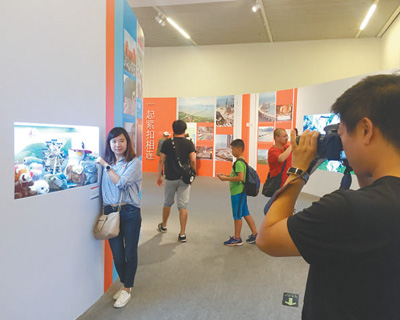 新疆的刘女士带着小学刚毕业的孩子到北京游玩,记者遇见她时,她正在第一单元“一国两制”前给孩子做讲解。“之前就有关注过香港回归20周年,没想到今天正好碰上了,儿子又很好奇,就带他进来看看?!绷跖勘硎?,孩子想知道什么是“一国两制”,让她很高兴。就在刘女士接受采访的这会儿工夫,她的孩子已经被吸引到人气最旺的“回到20年前的自己”拍照体验区了。