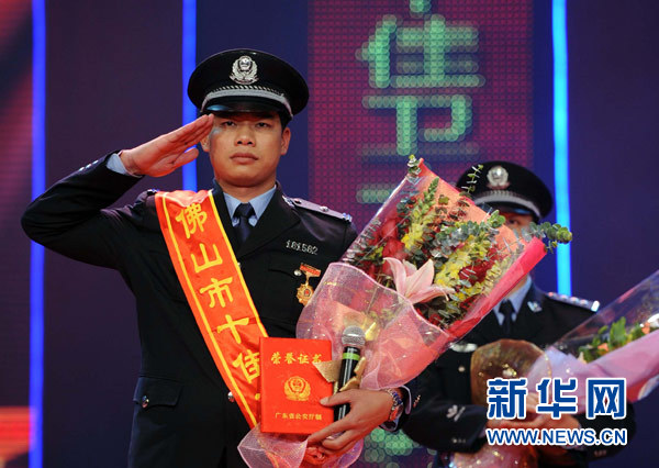 2009年,林伟光荣获首届“佛山市十佳卫士”称号(资料照片)。新华社发