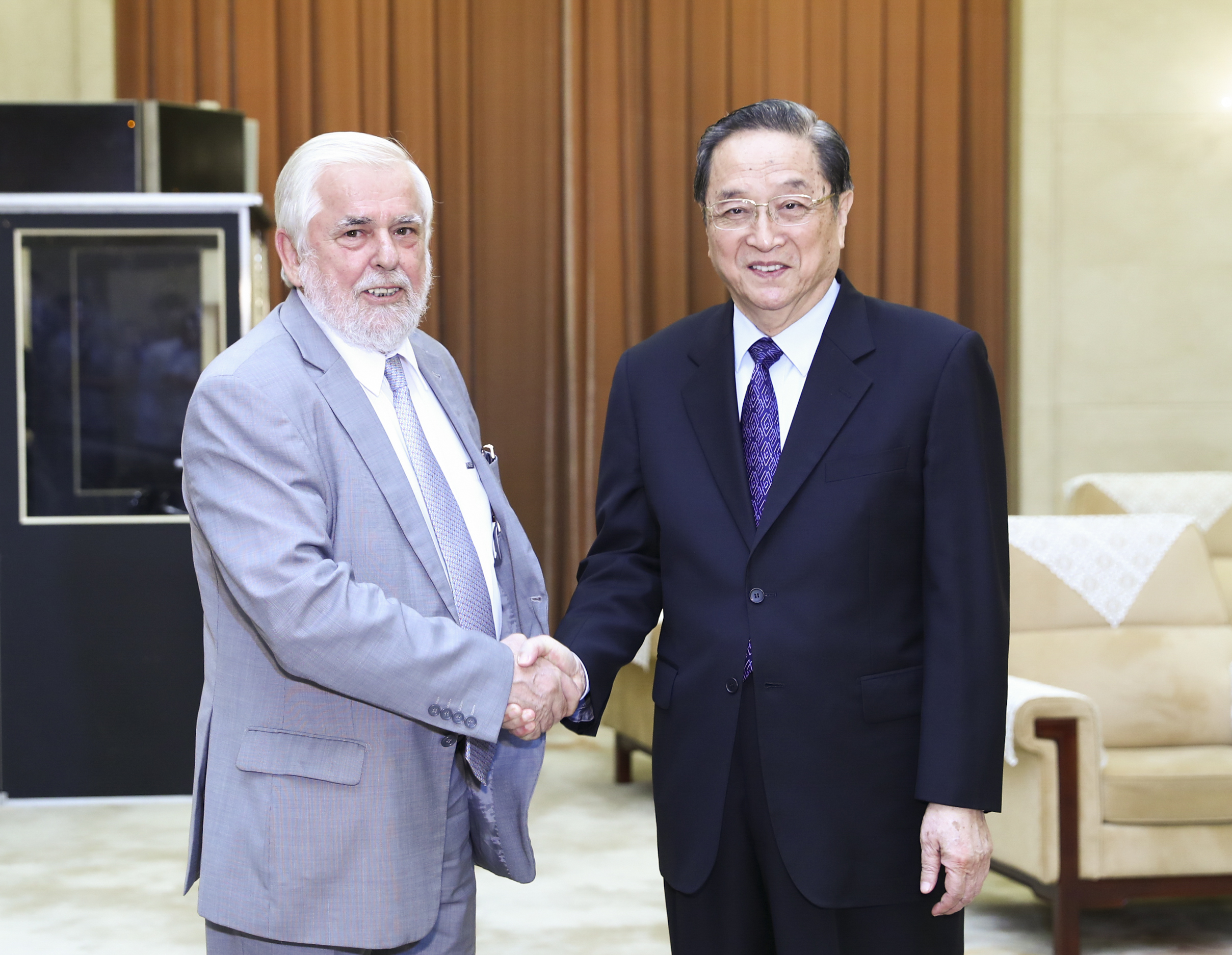 全国政协常务副秘书长、中国经济社会理事会副主席潘立刚,外交部副部长王超,全国政协教科文卫体委员会副主任、中国经济社会理事会副主席张秋俭,全国政协外事委员会副主任、中国经济社会理事会副主席王胜洪,全国政协常委、中国经济社会理事会副主席徐振寰会见时在座。