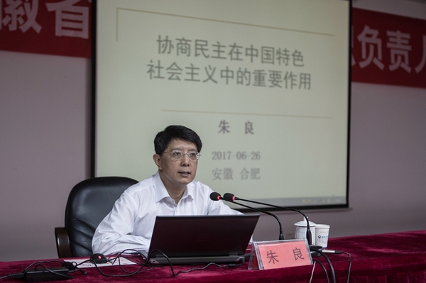 6月26日,九三学社中央宣讲团成员、北京市政协委员朱良赴合肥,为九三学社安徽省委2017年基层组织负责人培训班作专题讲座。