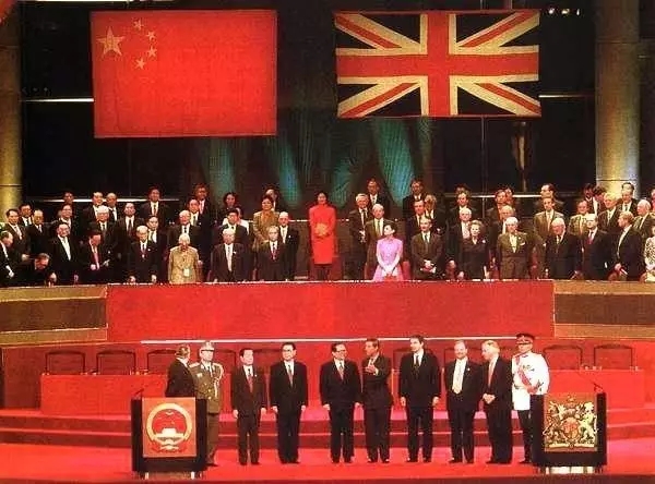 1997年6月30日午夜,中英两国政府香港政权交接仪式在香港会议展览中心举行。7月1日零时,场内响起了雄壮的国歌,五星红旗冉冉升起。国旗之旁,香港特别行政区紫?;ㄇ煜嗨嫘煨焐?,香港终于回归祖国怀抱。