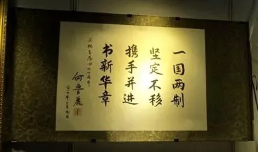 2017年“庆祝香港回归20周年两岸三地名人名家书画邀请展”上何鲁丽的书法作品。