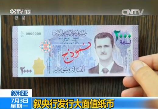 7月2日,叙利亚中央银行宣布从当天起,在大马士革及其他省份发行面额为2000叙利亚镑的纸币。纸币正面为叙利亚总统巴沙尔头像,背面为叙利亚人民议会。