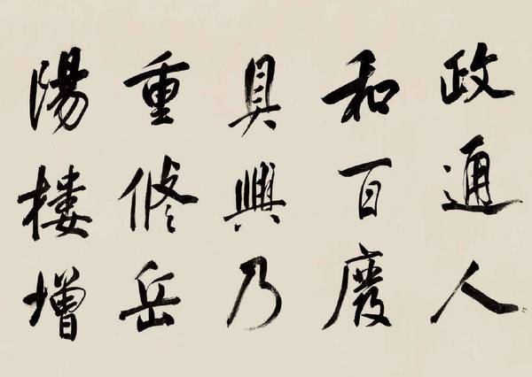 他晚年独具特色的行书精品《岳阳楼记》。融晋、唐、宋、元各家风格于一体,笔力遒劲、悠闲自得。既见米芾风骨,又显旷世之志。