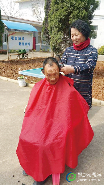 图为栗红莲义务为老人理发。本报记者 高春鸿 摄