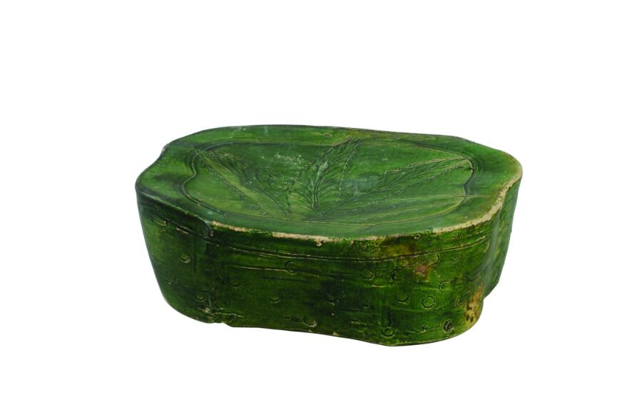 北宋吉州窑绿釉蕉叶纹枕