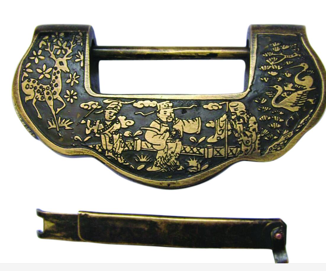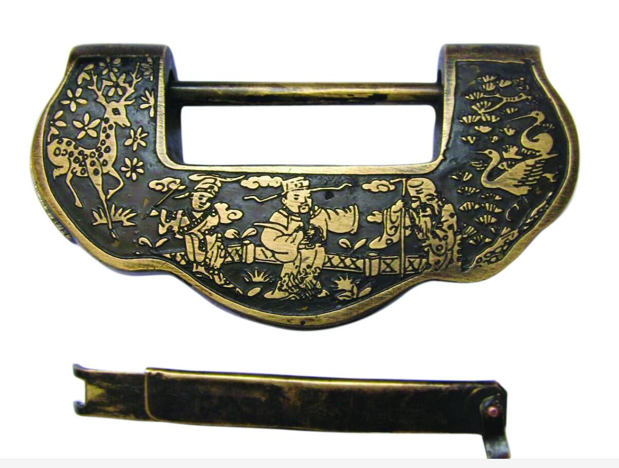 古锁是一种历史的见证。早在远古时代,人类已懂得把个人贵重的物品用兽皮包起来,外面用绳索捆缚,最后的开启处打上特殊的绳结。而绳结只能用一个叫“骨锉”的工具才能挑开。绳结和骨锉,就是锁和钥匙的雏形。据资料记载,最早的锁是用木头制成的,想来也是不堪一击,只能作为象征性的锁。我国的金属锁最早出现在汉代,是簧片结构锁。明清时代是古锁的鼎盛时期,以铜质和铁质为主。随着时代的发展,古锁从此退出了历史舞台。但透过泛着沧桑的古锁,却可以领略到中华民族博大精深的历史文化。