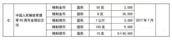 07月04日讯,根据央行发布的《2017年贵金属纪念币发行计划》中,2017年7月将发行中国人民解放军建军90周年纪念币。