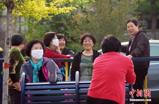 4月16日,在河北安新县一广场晨练的人们。 中新社记者 毛建军 摄