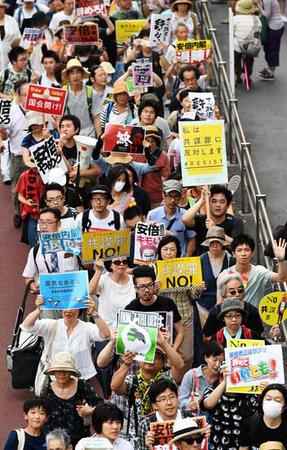 据日本《朝日新闻》网报道,此活动是由市民团体“为了未来的公共”等发起组织的。当地时间下午5点半左右,示威游行开始。参加游行的市民手举着“安倍内阁辞职”、“NO!共谋罪”以及“不要说谎”等标语牌。据悉,“共谋罪”法案主要是为了处?!翱植阑疃鹊淖急缸铩倍律璧淖橹缸锎Ψ7ǎ植雷橹仍谧橹缸锏募苹锥伪徊槌錾嫦蛹纯捎枰源Ψ?。许多人都担心该法案可能导致国家过度监视和滥用公民权利。