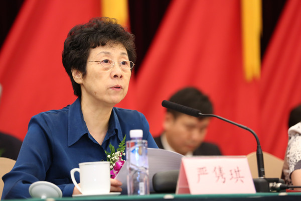 全国人大常委会副委员长、民进中央主席严隽琪代表民进中央致贺词。