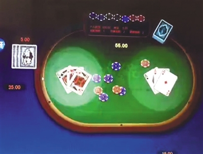 开牌后,3个“A”赢了一名玩家的3个“K”。记者 大路