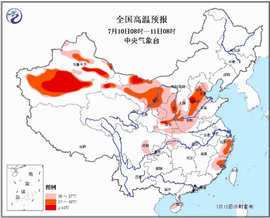 过去三天,我国华北中南部、内蒙古中西部、西北地区东部以及江南东部都出现35℃以上的高温天气。监测数据显示,9日,新疆、甘肃等地有11个县市日最高气温突破历史极值,其中新疆吐鲁番最高气温达47.8℃,与2011年7月14日出现的历史极端最高气温持平。河北中南部、陕西关中地区也出现了40℃以上的高温天气。