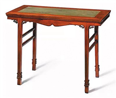 明末黄花梨插肩榫绿纹石面酒桌