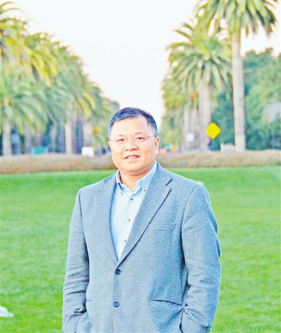 黄大年在美国斯坦福大学参加学术交流会时的照片(2011年12月5日摄)。
