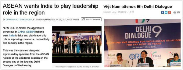 “东盟希望印度扮演地区领导者的角色”——这是印度《经济时报》网站对此次“德里对话”报道的标题。报道开篇就宣称:“在中国行为愈发强势的背景下,东盟国家期待印度发挥领导角色,提升该地区的商业、互联和安全?!?/p>