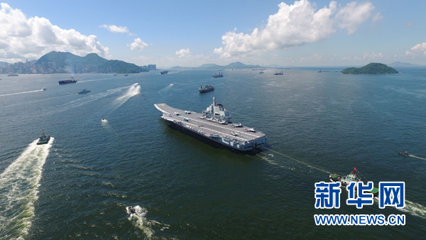 7月11日,辽宁舰缓缓驶离香港。新华社记者曾涛摄