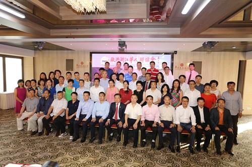 旅法侨界代表团与莲都区政府代表团在欧洲浙江华人联谊会主办的座谈会上合影。(法国《欧洲时报》/黄冠杰摄)