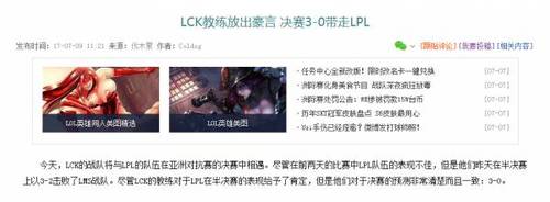 最终,我国LPL和韩国LCK联赛进入决赛。决赛前韩国教练大开嘲讽:LCK会3:0战胜LPL。