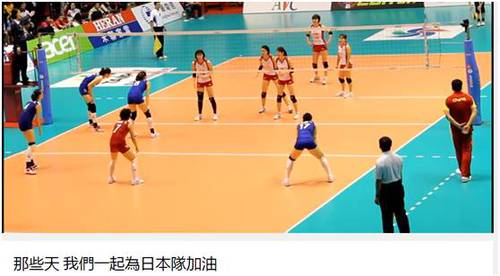 当年在中国台湾省举行的女排亚锦赛,中国女排和日本女排争夺冠军的时候,全场为日本队加油欢呼,用日语为日本队加油。日本队得一分,全场必然掌声雷动,欢呼四起。在youtube上有台湾省观众上传的视频,标题叫“那些天,我们为日本队加油”。当日本队的球出界,全场一片遗憾声,当看到裁判判罚是打到了中国女排队员的手,判罚日本队得分的时候,全场喜悦地沸腾了。