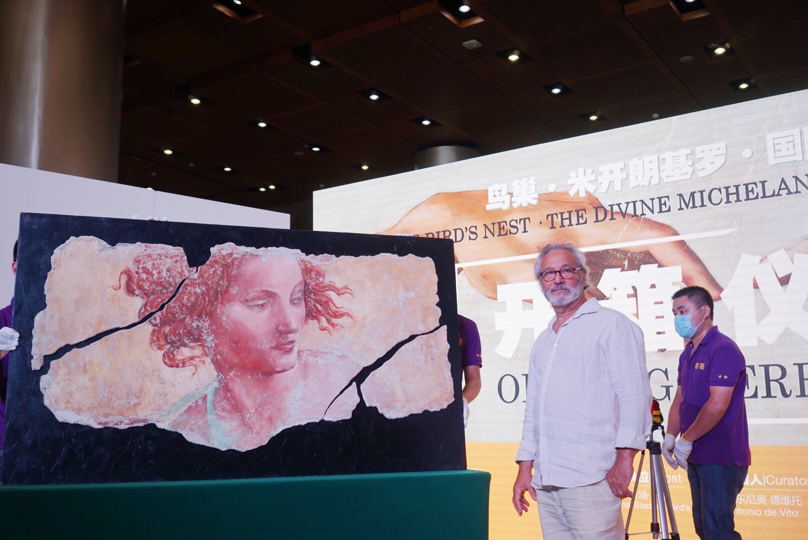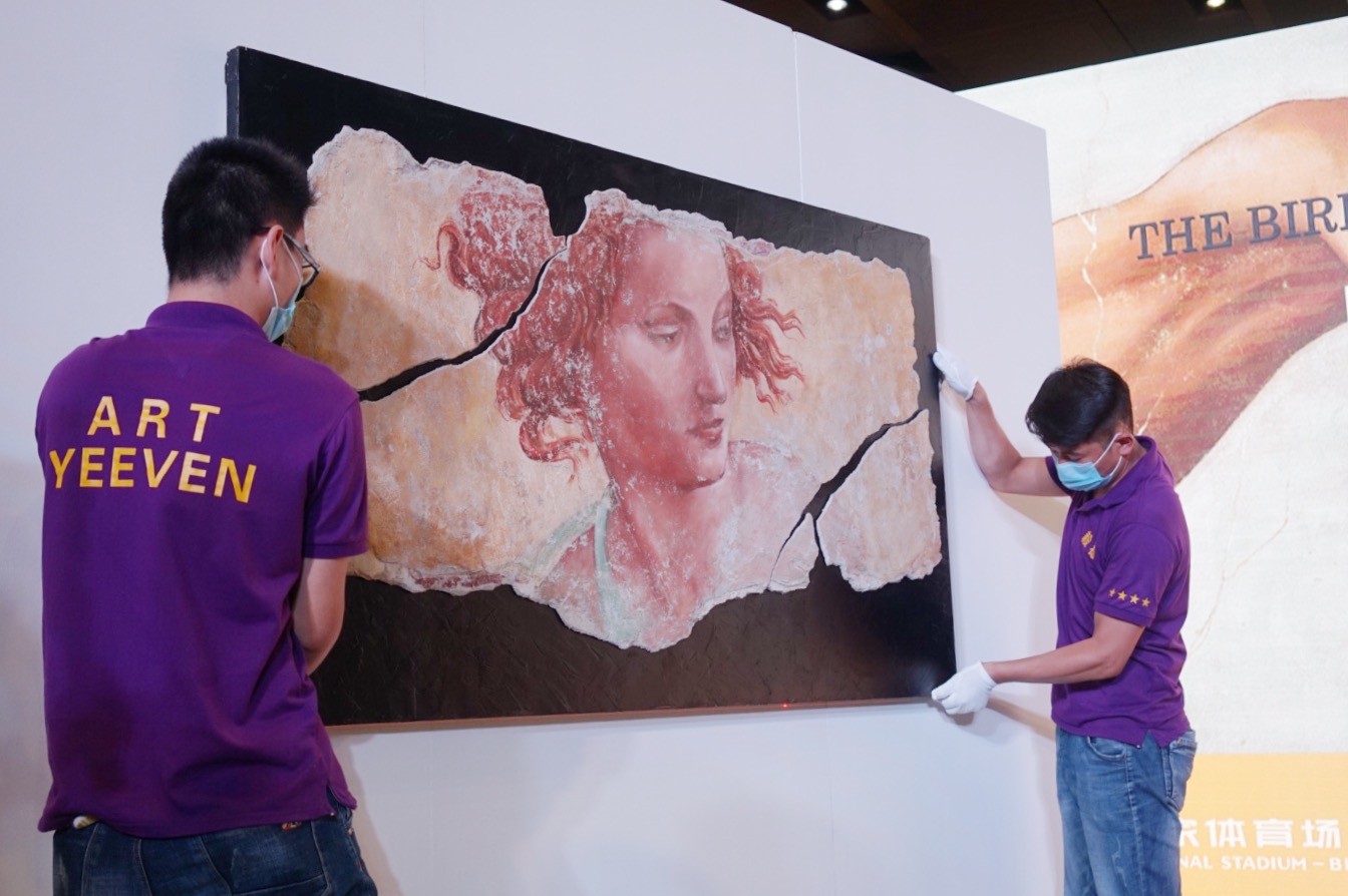 “鸟巢·米开朗基罗国际艺术展”开幕在即,由策展人安东尼奥·德维托(Antonio de Vito)临摹的湿壁画作品《先知以西结背后的天使》的开箱仪式7日在鸟巢文化中心启动。