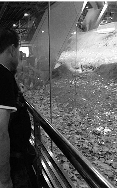 有些没扔好,硬币撞到了玻璃上,发出叮叮当当的声响。有的小孩子追着掉在地上滚动的硬币满展厅跑,场面多少有些混乱。