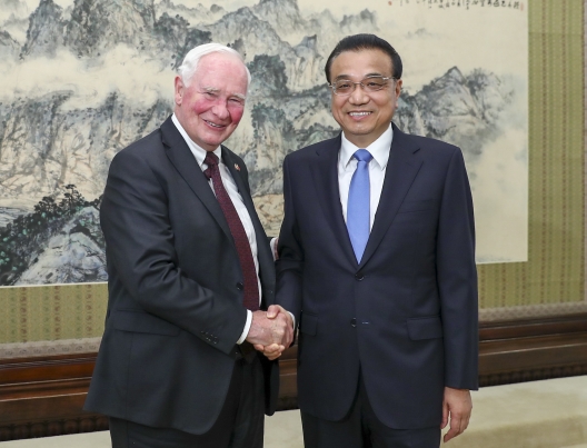 7月13日,国务院总理李克强在北京中南海紫光阁会见加拿大总督约翰斯顿。新华社记者 谢环驰 摄