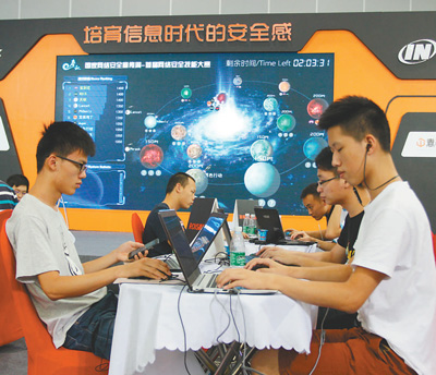 在国家网络安全宣传周首届网络安全技能大赛上,来自全国10所高校的10支顶尖战队一决高下,30名“白帽子”黑客捉对厮杀。
