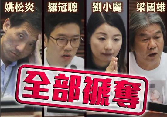 香港剥夺4名议员资格 央视:辱国者法必严惩