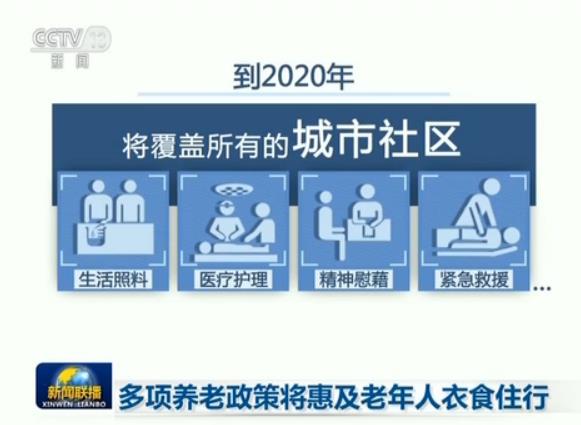意见提出要发展居家养老服务,民政部表示,到2020年生活照料、医疗护理、精神慰藉、紧急救援等养老服务,将覆盖所有的城市社区,90%以上的乡镇和60%以上的农村社区。
