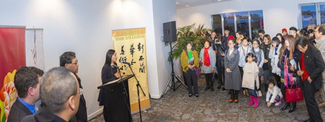 李芬团长致辞说:“今年是纪念香港回归祖国怀抱20周年,也是新中建交45周年,举办画展的目的在于为旅居新西兰的华裔画家们,美术爱好者们提供一个展示自己作品,相互交流的平台。是一个既具有专业艺术水准,又有群众艺术形式的展览。今天展出的作品类别包含了中国画、中国书法、油画、水彩画、丙烯画等多种形式。参展者有专业画家,也有美术爱好者的习作。有年逾古稀的老艺术家,也有风华正茂的青少年。目前,在奥克兰有不少的艺术学校,孩子们有机会在课余时间学习绘画艺术,无论是中国画和西洋绘画,都是对他们在艺术道路上的熏陶和培养,丰富他们的业余文化生活,特别是在当今手机,游戏,电脑普及的时代,这种脱离电子游戏,以学习美术课来增加自身修养的形式,尤为重要。是家庭教育,培养志向,净化环境的最佳选择?!?/p>