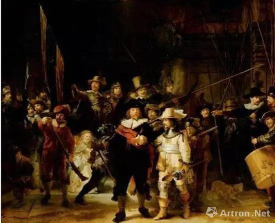 《夜巡》的创作完成于1642年,该画作的内容属于当时流行已久城市民兵集体肖像画,长期以来这种画已经形成了固定的绘画模式,所有民兵一字排开,有人调侃说,只要一剑就可以把所有人斩首。1630年来到荷兰的伦勃朗凭借《蒂尔普医生的解剖课》在当地已经很有名气,订单不断且出价很高。伦勃朗是接到订单才创作的《夜巡》,只要在《夜巡》画面上出现的人每人都要支付至少100荷兰盾,而画面中心的班宁柯克连长和身边的副官出的价远比这要高。在伦勃朗笔下原本应是静态合影似的画面充满了动感,每个人的动作、神态都不尽相同。班宁柯克显然对这幅画非常满意,还特意出钱请擅长小画像的赫瑞特兰登临摹了一幅,正是这样,我们才知道今天的《夜巡》发生了哪些变化。
