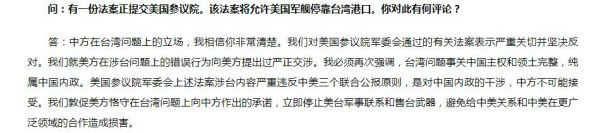 对此,中国外交部发言人在6月29日和6月30日,曾两度对美国参议员军委会的相关做法表示“坚决反对”,并要求其“纠正错误”。