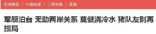 鉴于此,台湾《中时电子报》评论提醒道,台湾须清楚认知,所谓“军舰泊台”,其实是让两岸更紧绷、美中无端生波的“猪队友提案”;尤其当前美中关系,利益大于竞争,美国基于国家利益与现实,现阶段根本不可能同意签署该法案,蔡英文不该再抱持不切实际的乐观与期待。