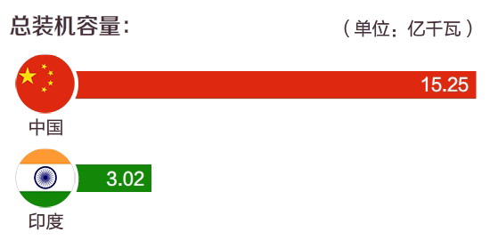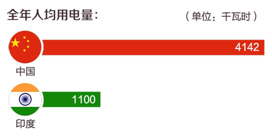 首先是中印两国电力发展情况对比,2015年,中国发电总装机容量是印度的5倍多,而人均用电量,中国差不多是印度的4倍。