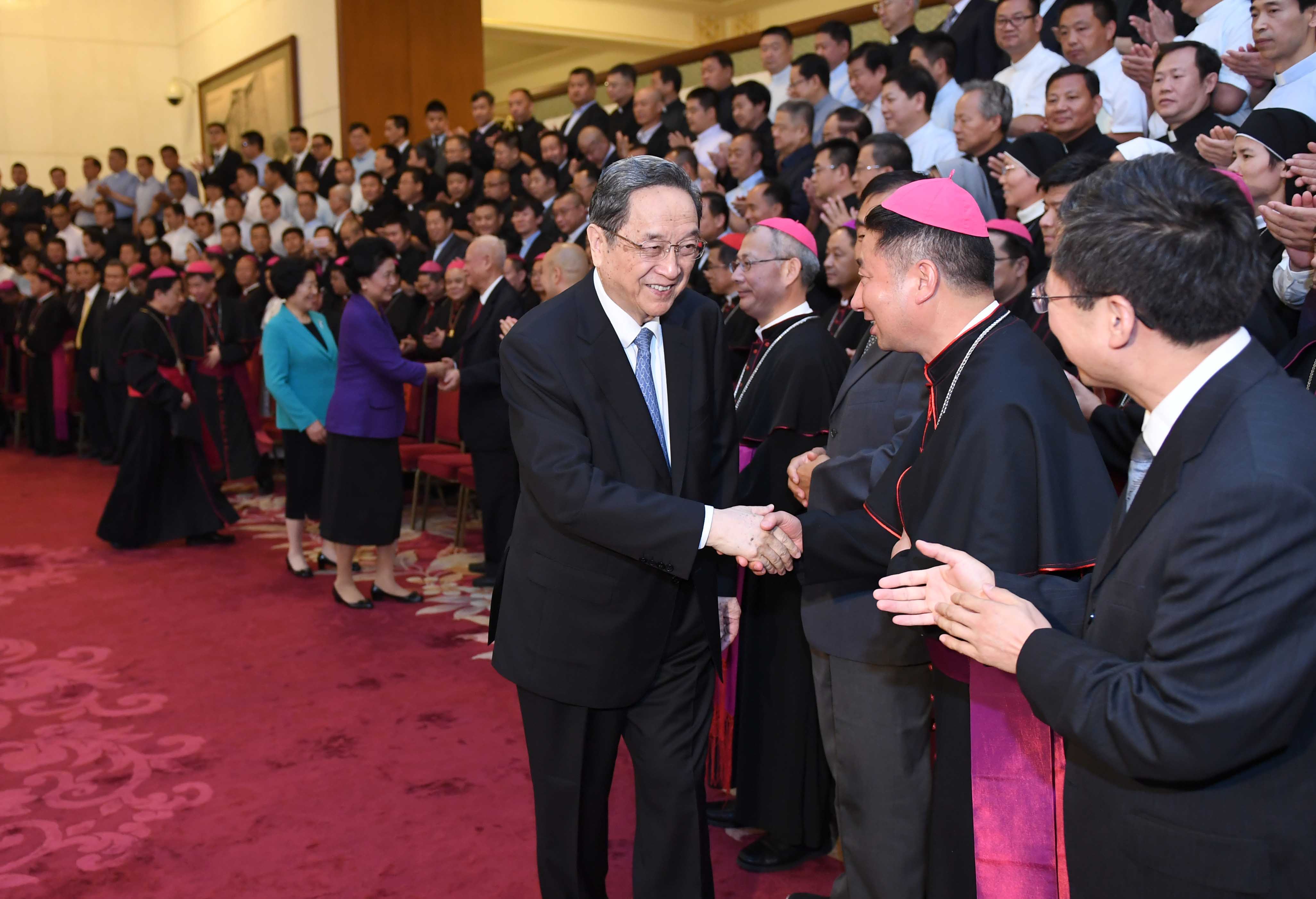 俞正声希望中国天主教爱国会认真学习习近平总书记关于宗教工作的重要讲话精神,自觉贯彻党的宗教工作基本方针,继承和发扬爱国爱教优良传统,更好地服务信众、服务社会;始终坚持宗教中国化方向,坚持以社会主义核心价值观为引领,对教义教规作出符合当代中国发展进步要求、符合中华优秀传统文化的解释,努力促进天主教教义与中华文化相融合,积极与中国特色社会主义社会相适应;切实加强自身建设和人才培养,培养合格的宗教教职人员队伍,保证中国天主教领导权牢牢掌握在爱国爱教人士手中;团结引领广大神职人员和信教群众,与全国各族人民一道,为实现“两个一百年”奋斗目标和中华民族伟大复兴中国梦而奋斗。