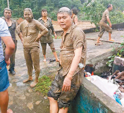 满身泥泞的救援人员。郑 涛摄(人民视觉)