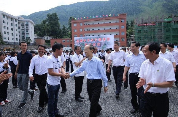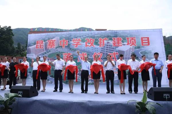 在昆寨中学校园改扩建项目落成仪式上,万鄂湘等领导嘉宾共同为项目落成剪彩。学校的改造在当地是一件大事,昆寨中学副校长李江维说,学校设施设备的落后、学生宿舍的拥挤、学生食堂的狭窄破旧等难题一直困扰着学校。