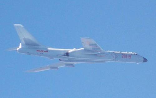 台防务部门首度公布台军IDF战机伴飞轰-6的照片。(来源:台湾“中央社”)