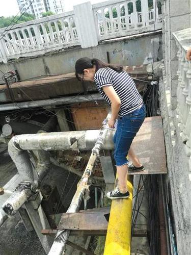 杨枫霜回家需要经过一段悬空的供水管道。