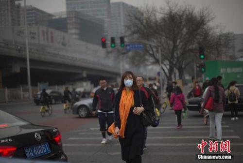 资料图:北京市民在雾霾中出行。 中新社记者 刘关关 摄