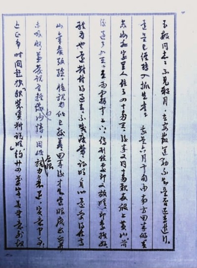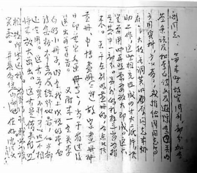 这封信像是一个手写便条,是用钢笔竖写的,日期为“十月八日”,应该是1973年,当时沈从文正有意调在合肥的黄永厚参与太白楼的陈列事宜。玉敏同志:不见数月,在安徽运动不知是否还在进行,还是已经转入抓生产。我是六月 中旬由南方回来的。去苏州和家里人住了四十多天。后来又同十多亲友爬上黄山,前后过了八天。在雨雾中上山,传 (转) 到住处即又放晴,印象极好。体力也还对付得过去,不感疲劳。证明身心还受得住高山气候考验。惟视力似已较差,回来后才知道眼底出血并未吸收,并发现有轻微白内障,因此左眼视力衰退,实意中事! 近正争时间赶抄“服装资料说明”,约廿四万字,若无意外故障,年终或可上交?;鼓馓砣灏俑酵?,在说明中,说服力或较强。你上次借用的材料,存馆中的已看过?;褂行┠愦ズ戏什糠?,盼望你能协助一下,为暂时寄还,便于清点清点。以后若还有用,仍可借去使用。你同学张同志闻已因病不能到馆工作。刘焕章则去邯郸作了些黑釉瓷动物,一尺以上大的,大致还不错。近几个月又去大砦搞陈列馆用一个群相,已完事??赡芑菇鞲雎短煊媒洗笮偷摹;朴烙竦纫盐奘拢皇抢羁扇?、吴作人等画,不供分销月份牌使用。又闻新北京饭店也不用。若照 日本文艺界出面情形而言,过不多久,但又会出面,也未可知。