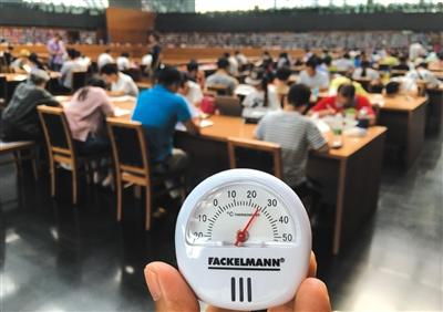 国图一些阅览室墙壁还悬挂有温度计。张工告诉记者,部分阅览室空调还无法实现自动控温和远程监控,增设温度计便于工作人员即时检查室内温度,“毕竟个体感受会存在差异,需要有统一的标准。”他表示,如果工作人员和读者发现温度过低或过高,后勤部门在接到反馈后的第一时间内都会派人到现场调查情况,并及时调整检修。