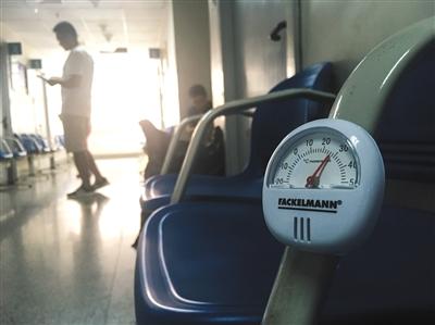 7月25日,北京市海淀医院,候诊区温度在27摄氏度左右。新京报记者 浦峰 摄