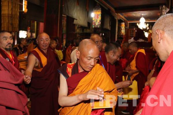 △图为拿到班禅大师赐物的僧人。(中国西藏网文、图/袁星宇)