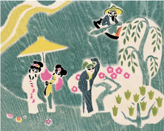 李以泰 相遇(《白蛇传》之一) 木版水印 28×35cm 1986年