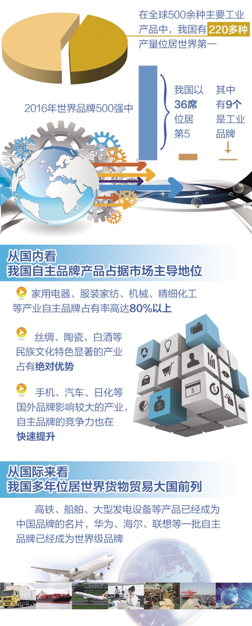 在联合国工业发展组织2016年的报告中,中国工业竞争力排名第5位;在世界品牌实验室发布的2016年世界品牌500强榜单中,我国以36席位居第5,其中有9个是工业品牌。两个“第5位”说明,中国制造“从大到强”依然任重道远,迫切需要创建以质量品牌为标志的竞争新优势。