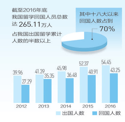 点评:自2008年“千人计划”实施以来,我国引进教授层次人才数量是此前30年引进总量的20余倍。截至2016年,各地引进高层次留学人才5.4万人。这几年,国家出台了各种形式的高端留学人才吸引计划,他们先进的技术、经验,强大的科研攻关和组织领导能力,为我国前沿研究、产业发展提供了有力支撑。在这里,个人梦想的实现与中国梦的实现紧密相连。
