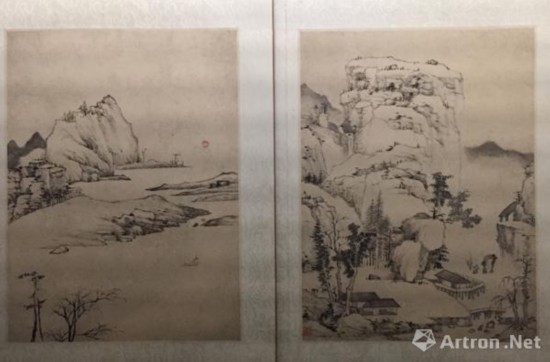 张恂善于画山水,墨法苍劲浑厚,别具古淡天然之致。墨笔绘山水十二开,多以干笔淡墨皴擦,构图脱俗清幽。